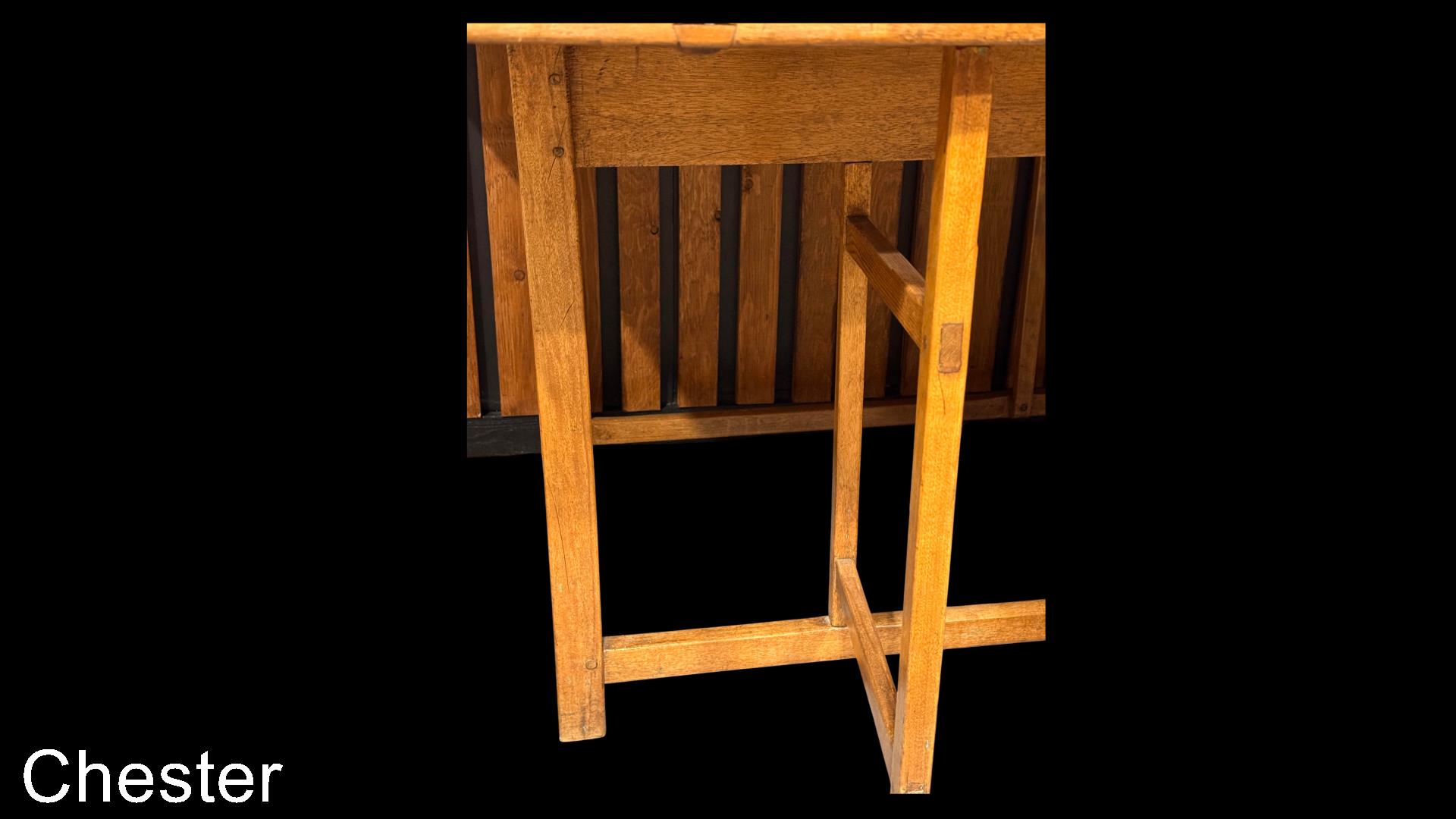 Table pliante a abattant, rustic à plateau rectangulaire. Pieds chanfreinés et traverses en quadrilatère. Table commune dans les demeures rurales.