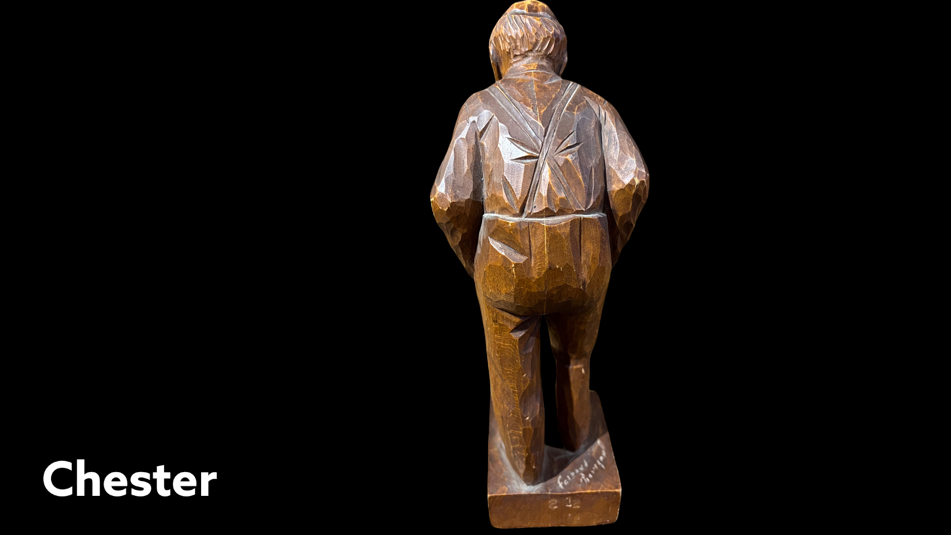 Fernand Bourgault (1932- ), Saint-Jean-Port-Joli, est le fils du célèbre Médard Bourgault. Tout en explorant également une manière sculpturale s’adaptant à la modernité, il perpétue le travail traditionnel de représentation du personnage et de la scène folklorique chère à l’École de Saint-Jean-Port-Joli dont son père Médard et ses oncles André et Jean-Julien furent les chefs de file. Ce vieil homme mains dans les poches, ( 9’’h.) , malgré sa petite taille, impose fermement sa présence, soulignant l’habilité du sculpteur dans sa manière traditionnelle.