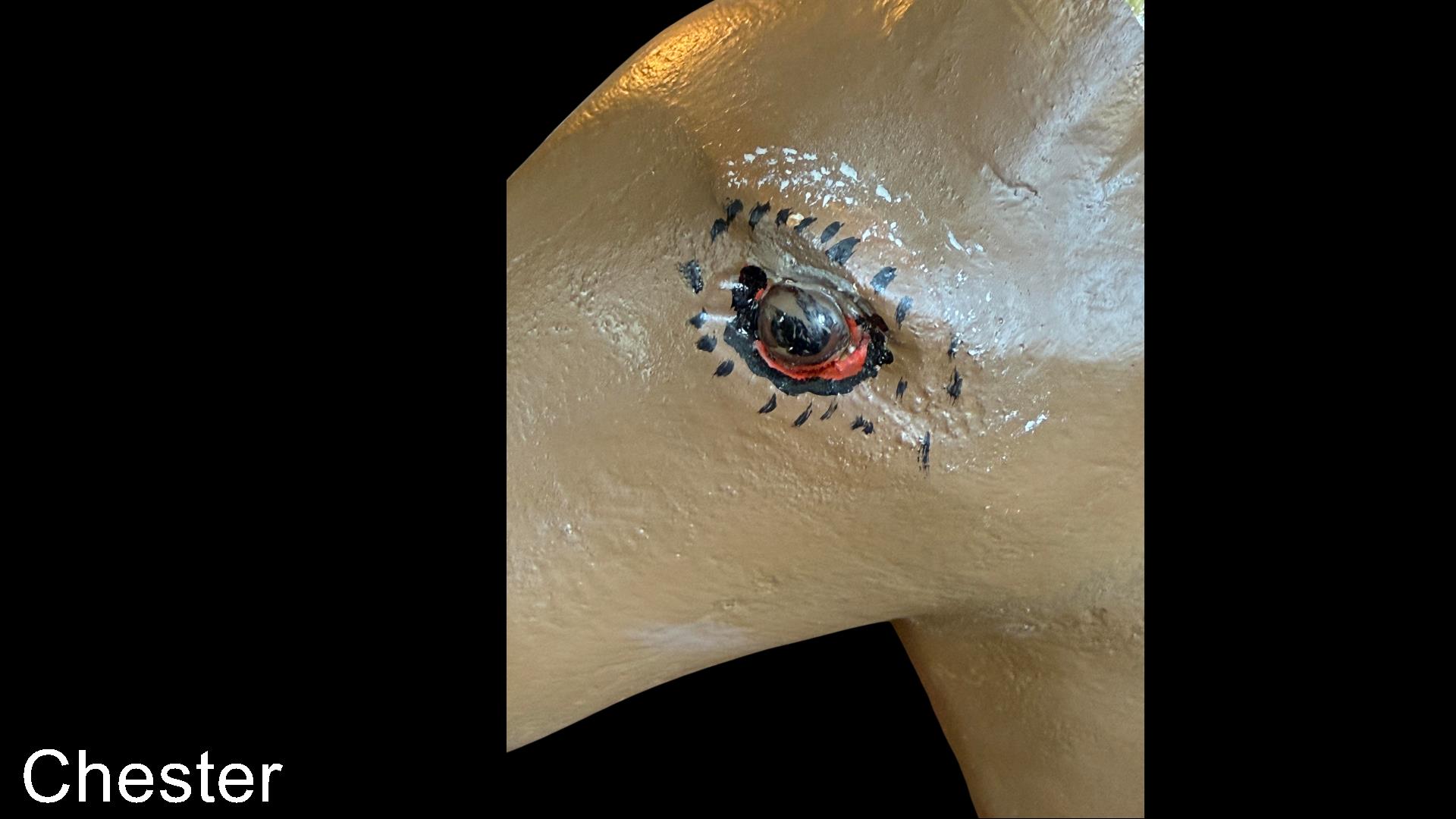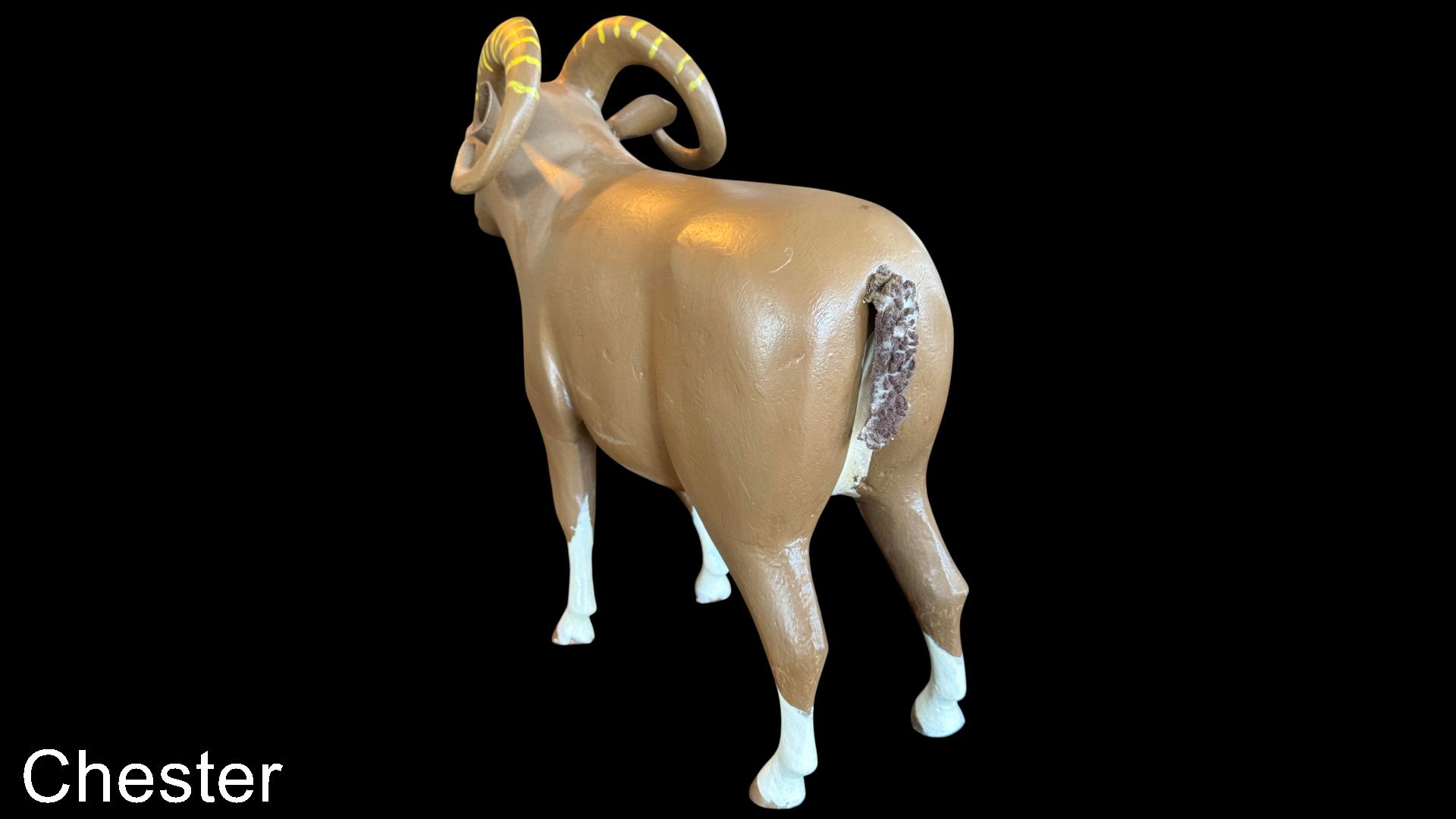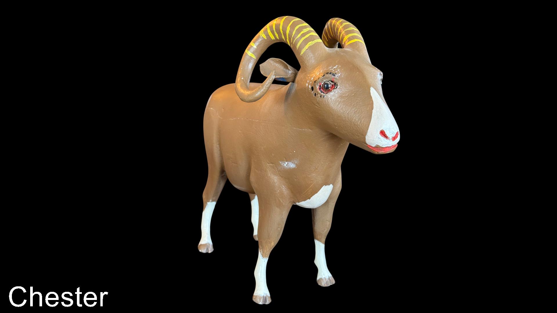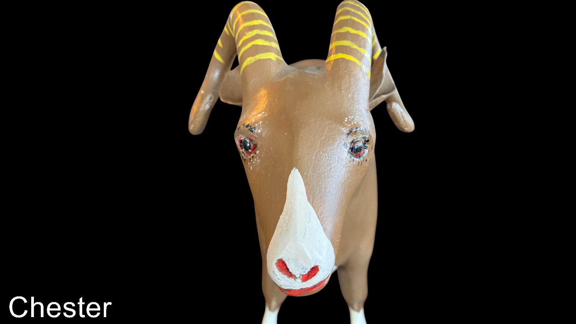 Aimé Desmeules (1917-1997), sculpteur reconnu du Bas-Saint-Laurent, est le fils de Georges Desmeules (né en 1891). C’est à 64 ans qu’il se lance dans la sculpture sur bois. Marchant d’abord dans les traces de son père, il élargit rapidement son horizon. Il crée alors un univers bien à lui, peuplé d’animaux de la forêt et de la ferme, qu’il nommera **« La forêt enchantée »**. Ses œuvres, empreintes de naïveté et d’authenticité, témoignent d’un art populaire sincère, enraciné dans le territoire, mais porté par une liberté créative assumée.