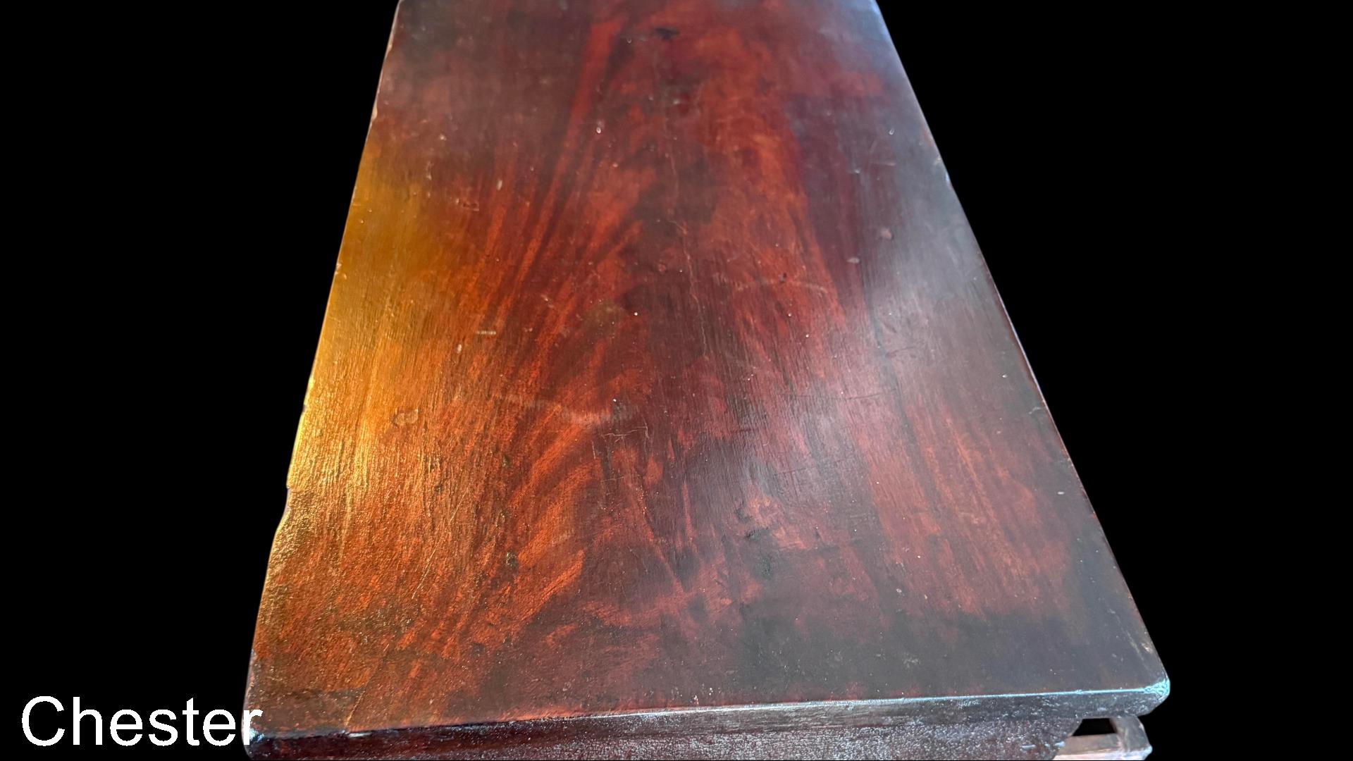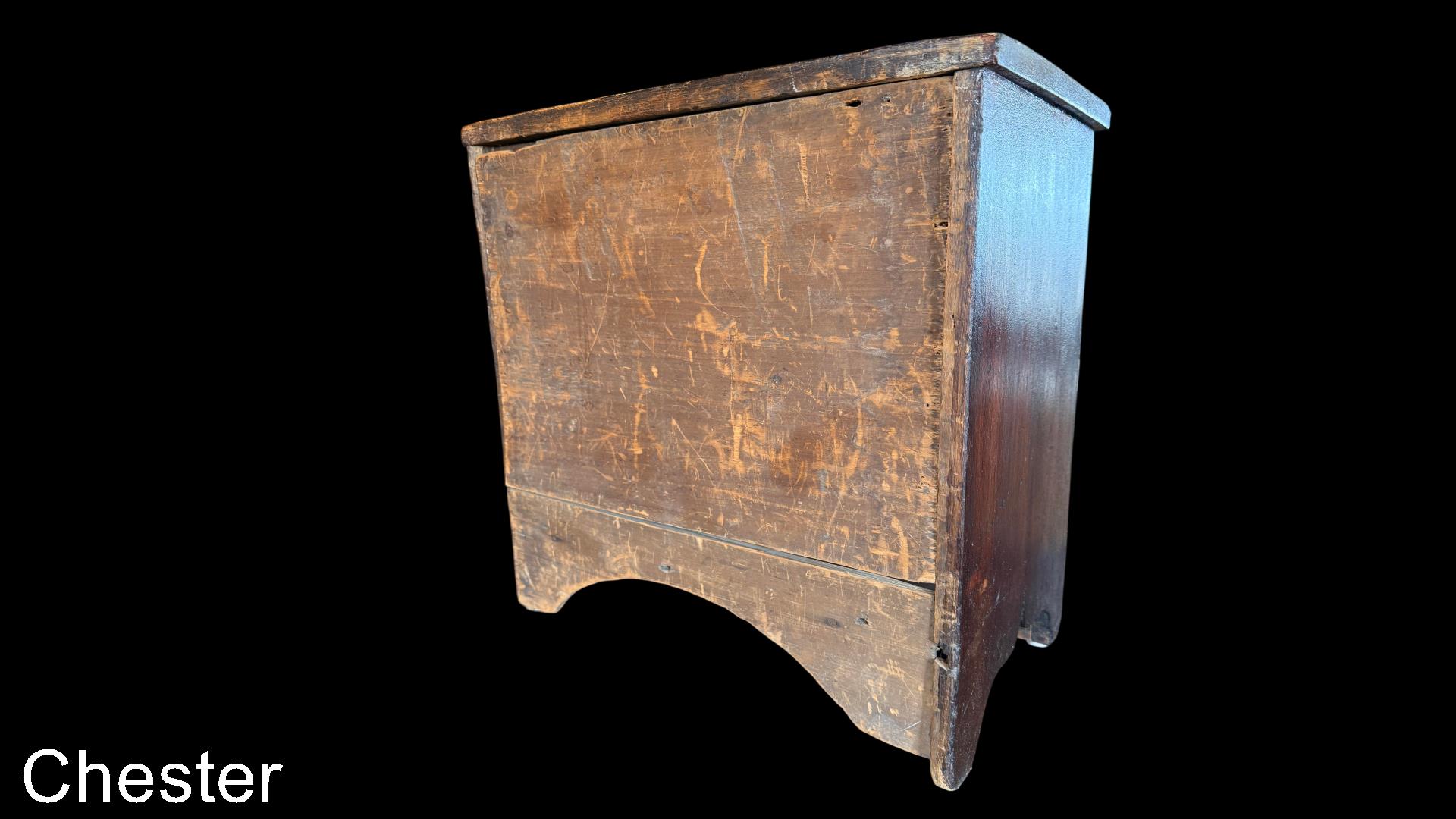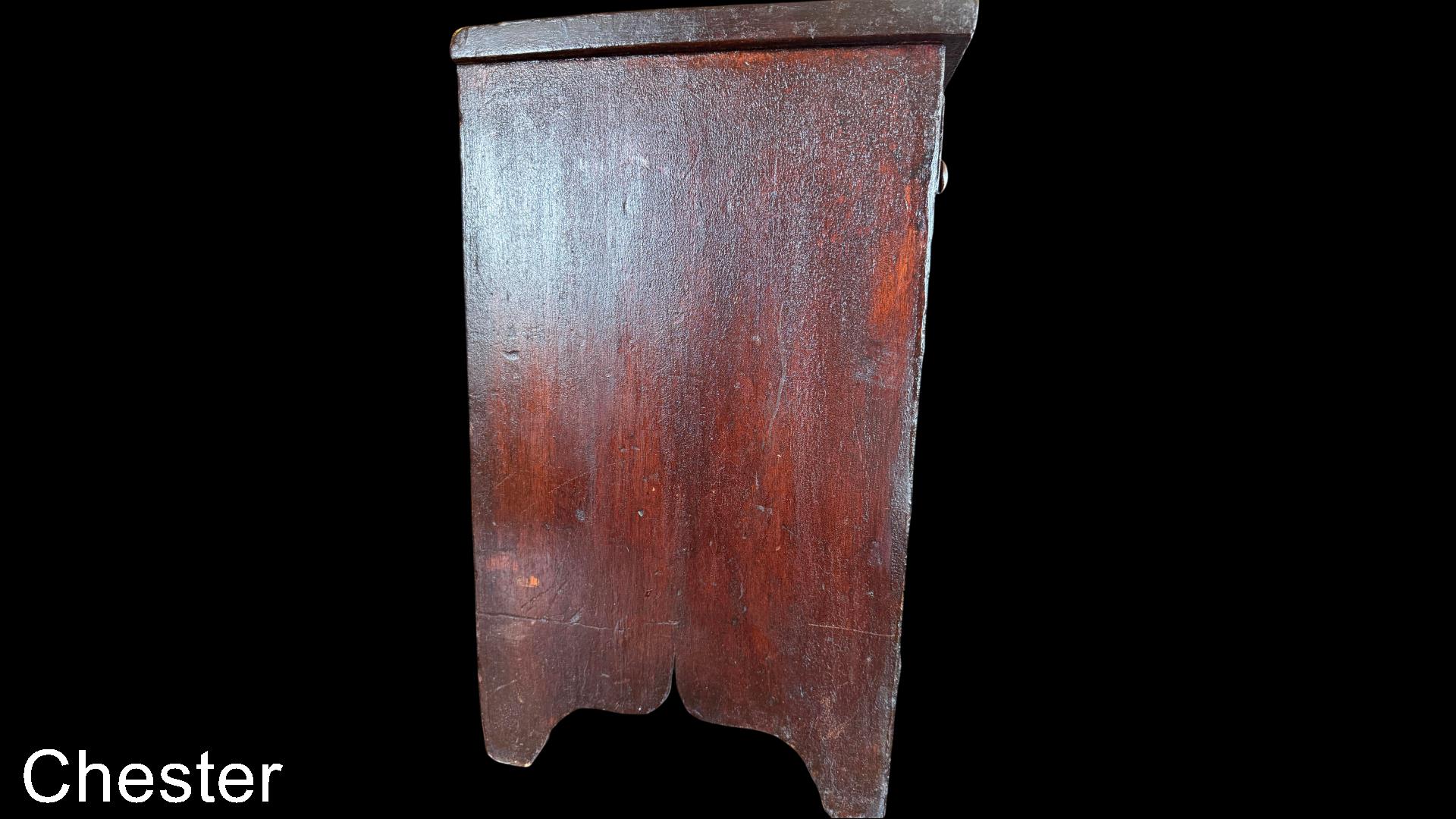 Commode miniature à quatre tiroirs en excellente condition. Son ancien vernis présente un magnifique craquelé et une oxydation naturelle, témoins de son âge et de son authenticité. Les tiroirs sont assemblés à **queues d’aronde**, et le dos est fixé à **clous carrés**, signes d’un savoir-faire traditionnel. Cette petite pièce a pu servir — ou pourrait encore servir — de coffret à bijoux. Une véritable pièce d’exception.