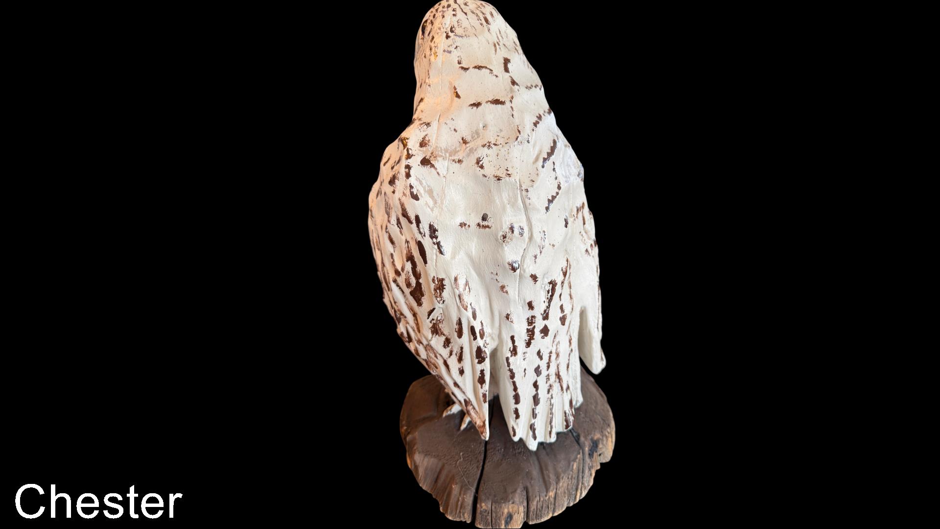 Aimé Desmeules (1917-1997), sculpteur reconnu du Bas-Saint-Laurent, est le fils de Georges Desmeules (né en 1891). C’est à 64 ans qu’il se lance dans la sculpture sur bois. Marchant d’abord dans les traces de son père, il élargit rapidement son horizon. Il crée alors un univers bien à lui, peuplé d’animaux de la forêt et de la ferme, qu’il nommera **« La forêt enchantée »**. Ses œuvres, empreintes de naïveté et d’authenticité, témoignent d’un art populaire sincère, enraciné dans le territoire, mais porté par une liberté créative assumée.